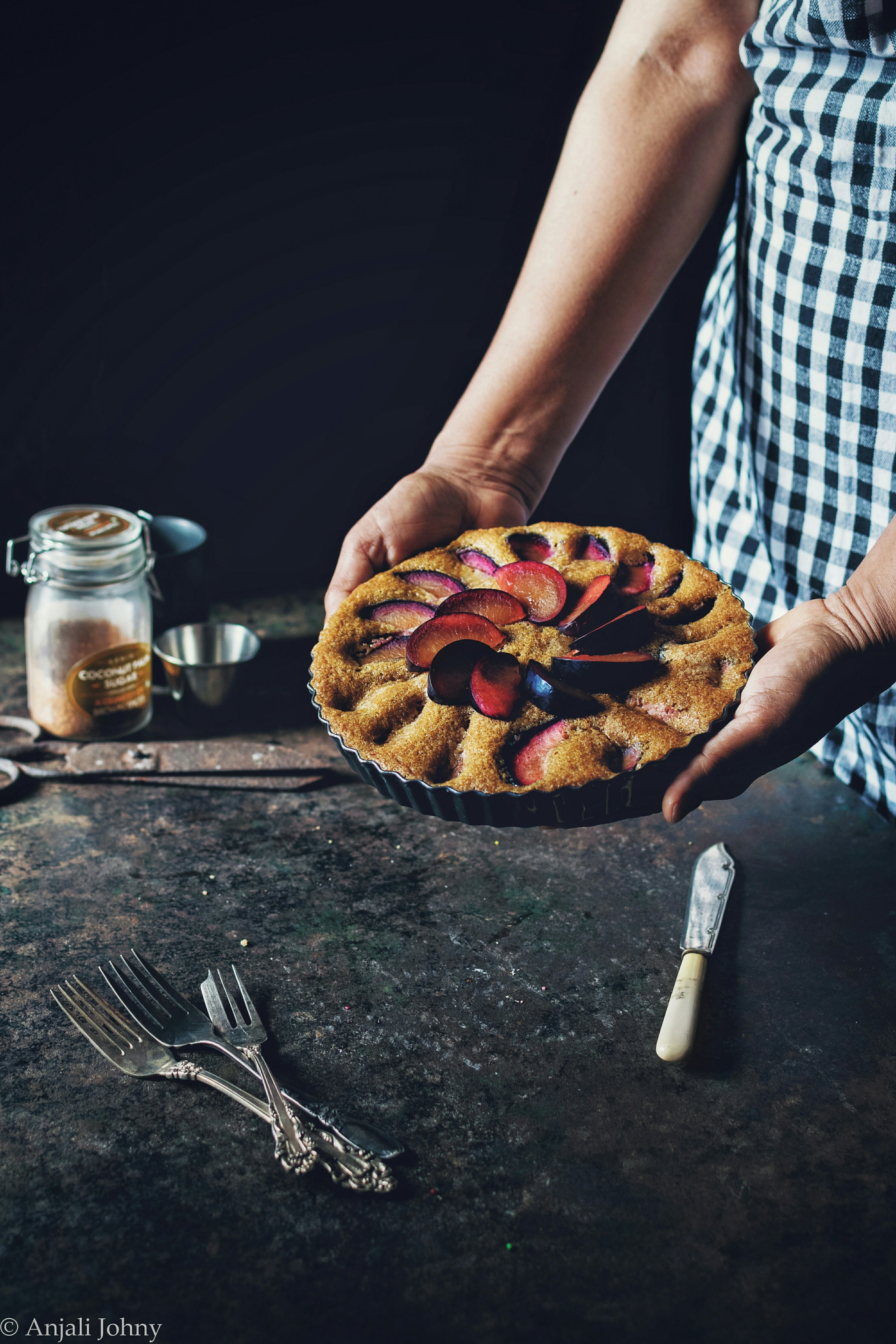 Also, I usually have my sister as the hand model in my photographs but this time, my lovely Mom volunteered, and I think the pictures turned out amazing! It gives that ‘home’ vibe, I think. Anyway, I think you don’t really need plums for this cake, you can try experimenting with other stone fruits too, it might turn out even better than this combo. I really liked this one though. It’s soft and tender and sweet and has so much coffee flavour, it pairs surprisingly well with the tart plums. You can use sweet plums if you find them, but I guess the tartness of the plums make this cake balanced.