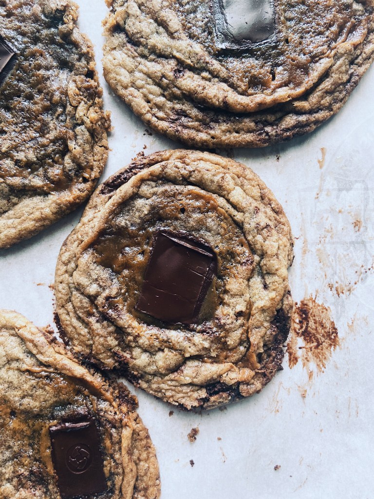 - Butter – I use salted butter and I prefer to brown it because it adds a whole new dimension of flavour making it very deep and caramely sort. Also, it helps the cookie to spread while baking.