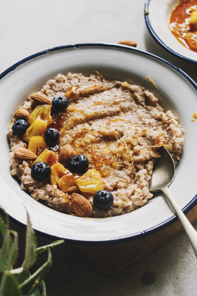Almond and Cardamom Rice Pudding (Payasam) w/ Caramelized Pineapple