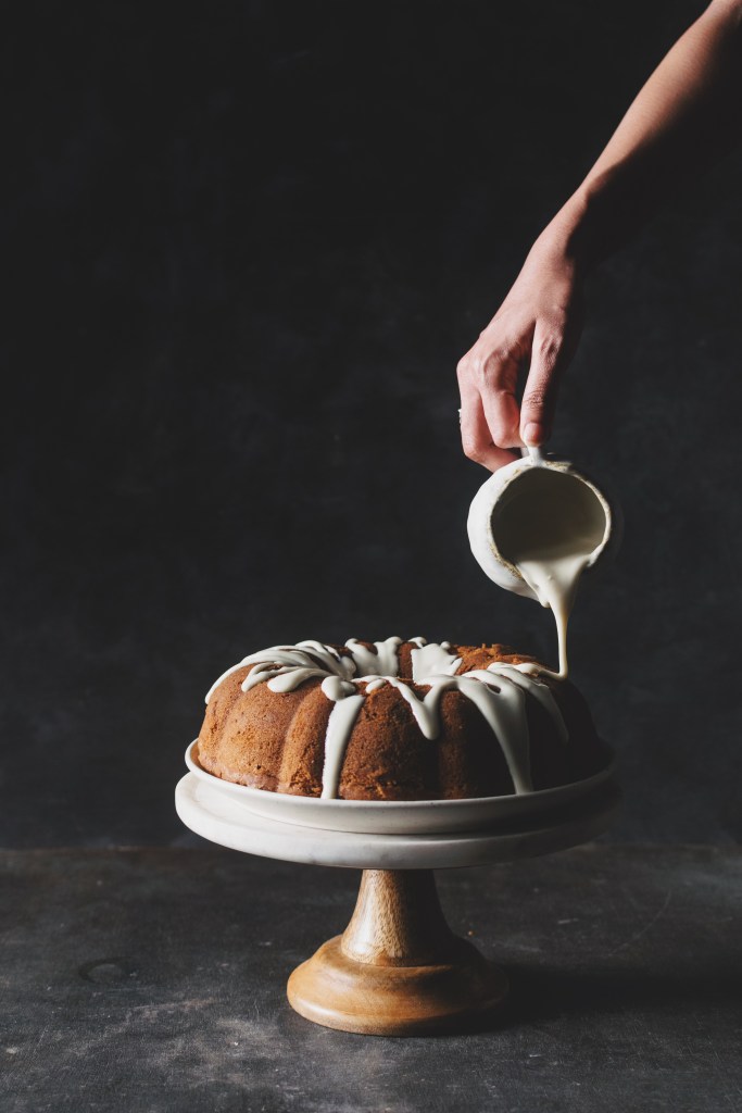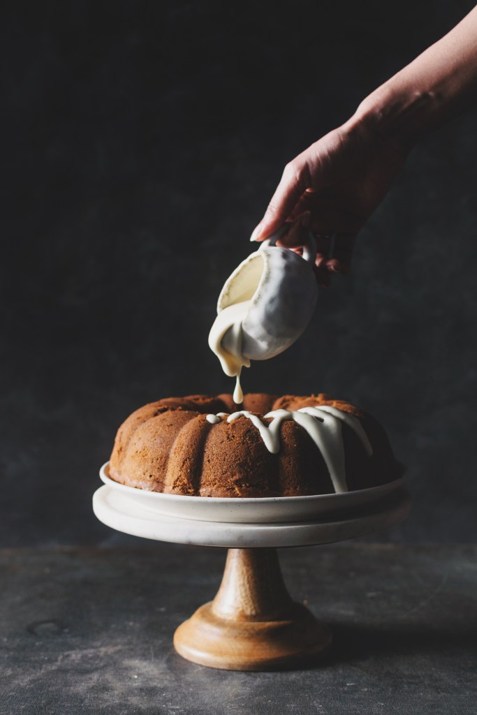 Pour the glaze on the completely cooled cake. Serve!