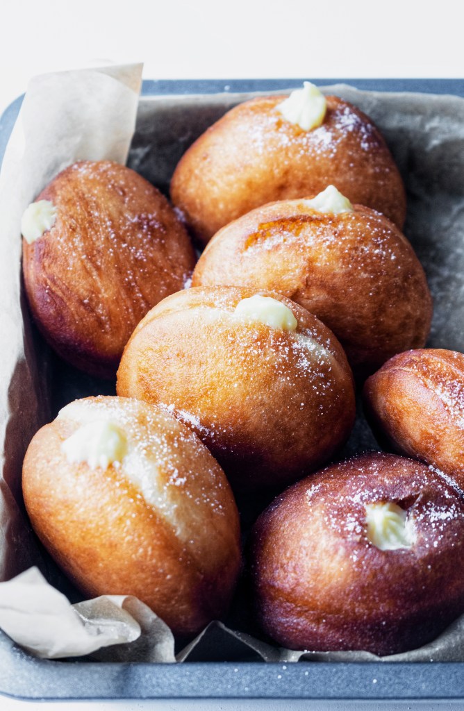 This essentially is just the recipe for doughnuts. For the custard I used a home-made recipe, one with eggs. You can actually use any filling of choice: a few options are Nutella, Raspberry Jelly/Jam, Marshmallow fluff etc. Anything that is not runny can be your filling.