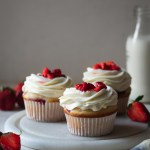 These cupcakes are so summery and bright. It is perfect for the gloomy winter days that await us. They are eggless, filled with fresh strawberries in the cupcake, topped with even more strawberries. It is also a small batch recipe, which means it makes enough for you and there are no leftovers.