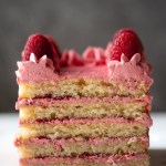 I used fresh raspberries to decorate the cake but I used frozen raspberries to make the buttercream frosting.