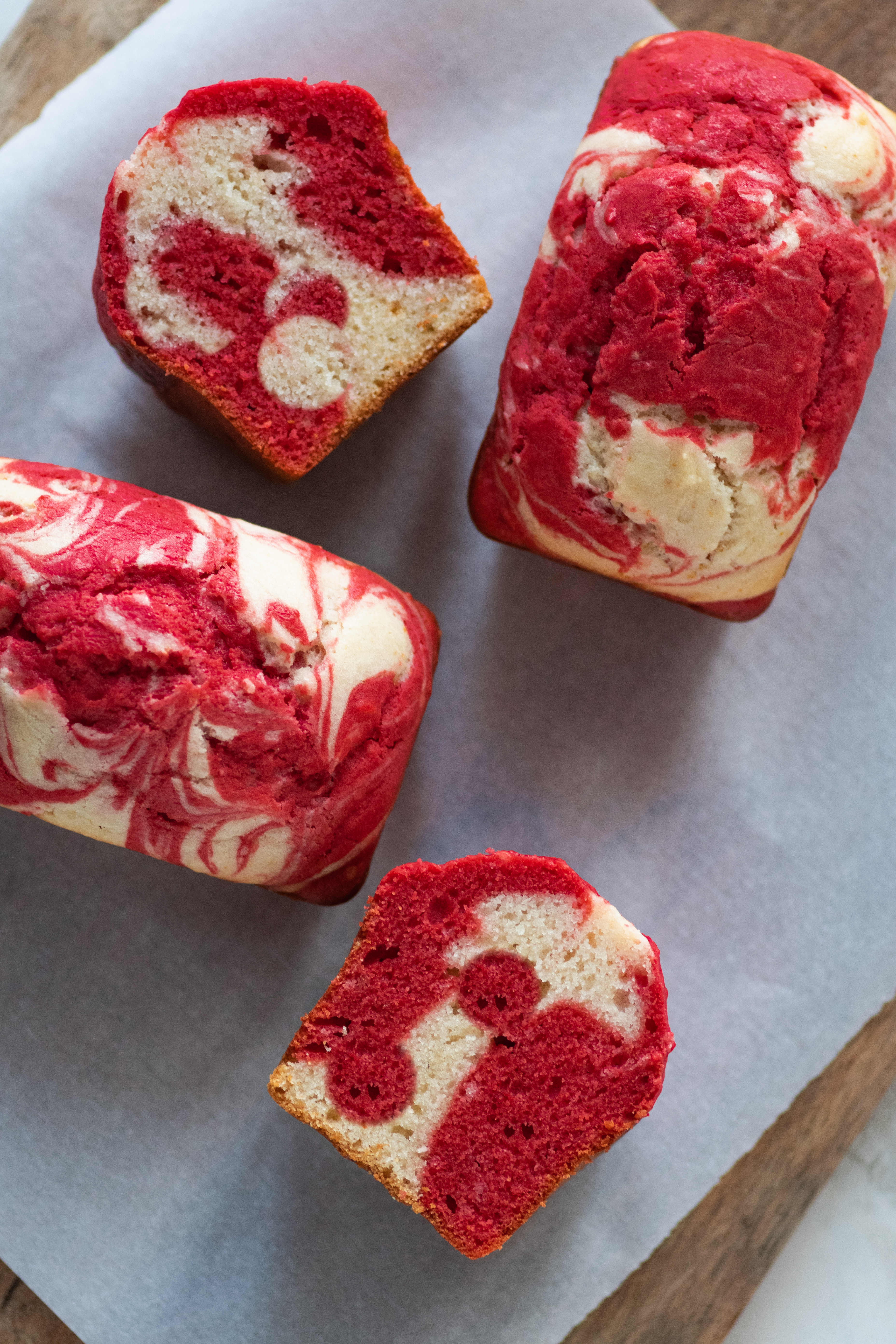 Luscious Vanilla Cake and Red velvet cake batters swirled together to make the prettiest, delicious marble cake.